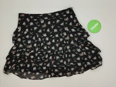 Mini spódnica damska marki Sinsay, rozmiar S, w kolorze czarnym z wzorem w drobne, pastelowe kwiaty. Spódnica charakteryzuje się rozkloszowanym fasonem oraz elastycznym pasem, który zapewnia wygodn...