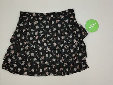Czarna spódnica w kwiaty – Sinsay, rozmiar L - Wzór: drobne, pastelowe kwiaty na czarnym tle - Krój: rozkloszowana, z falującym dołem - Talia: elastyczna gumka dla komfortu dopasowania - Długość: ...
