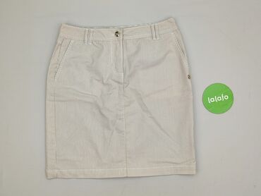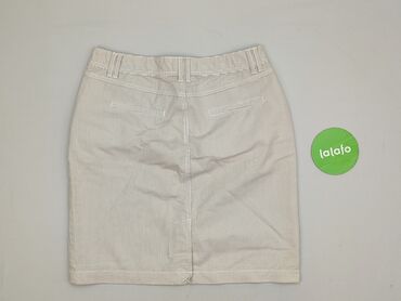 Spódnica BEL0VED Woman - Krój: ołówkowy, prosta linia, długość przed kolano - Zapięcie: rząd dekoracyjnych guzików z przodu - Wzór: pionowe białe paski na beżowym tle - Materiał: lekko teksturowan...