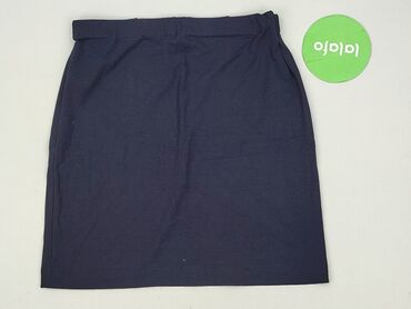 Granatowa spódnica ołówkowa z dzianiny - Krój: ołówkowy, lekko zwężany ku dołowi - Długość: mini/tuż przed kolano (zależnie od wzrostu) - Kolor: granatowy - Materiał: elastyczna, miękka dzianina (...
