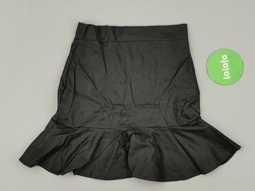 Czarna spódnica ołówkowa z falbaną - Krój: dopasowany, ołówkowy z asymetryczną, zakładaną falbaną z przodu/boku - Długość: mini/przed kolano - Wysoki stan - Zapięcie: zamek na plecach - Materiał: e...Stan: