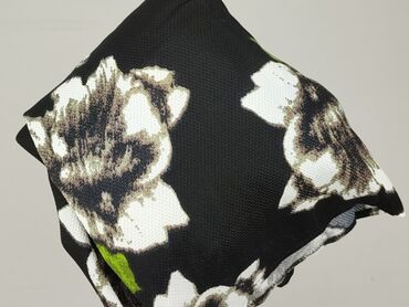 - Wzór: duże kwiaty w odcieniach bieli i beżu z zielonymi liśćmi na czarnym tle