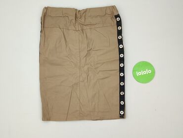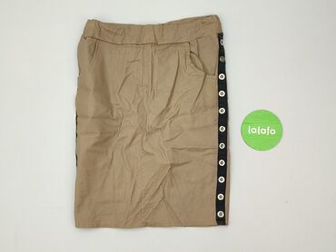 Beżowa spódnica damska midi z elastyczną talią - Krój: prosty, lekko zwężany ku dołowi; długość midi - Talia: szeroka, elastyczna guma po bokach dla wygody i dopasowania - Rozcięcie/zakładka z tył...