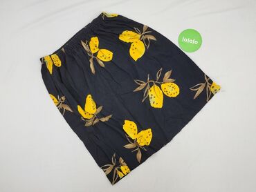 Spódnica damska midi z motywem cytryn - Krój: prosty, lekko rozszerzany ku dołowi, długość midi - Wzór: żółte cytryny i zielone liście na czarnym tle – wyrazisty, letni print - Materiał: lekka, zw...