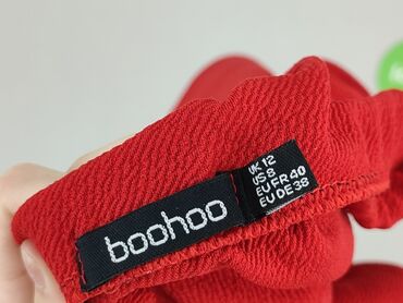 Czerwona spódnica Boohoo z falbaną - Marka: Boohoo - Krój: ołówkowy, z wysokim stanem - Długość: midi (za kolano) - Detale: efektowna, skośna falbana z przodu/boku, gładka bez wzoru, elastyczna ta...