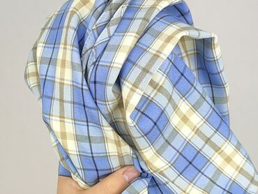 - Wzór: krata w odcieniach błękitu, kremu i beżu, z cienkimi ciemnymi liniami