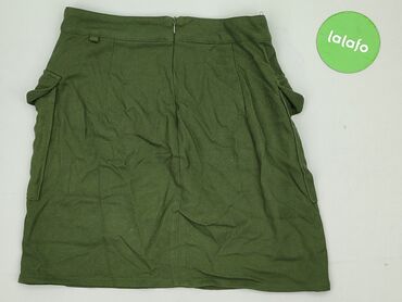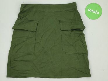Spódniczka damska mini w kolorze khaki/oliwkowym, fason cargo. - Materiał: gładka, lekko sztywna tkanina bawełniana (widoczne podwójne przeszycia). - Krój: prosty, przed kolano (długość ok. 41–42 ...