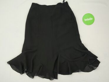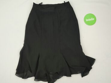 Czarna spódnica damska, rozmiar 36. - Krój: lekko rozszerzana ku dołowi, z klinami tworzącymi delikatną falbanę przy brzegu. - Długość: do kolan lub za kolano (w zależności od wzrostu). - Zapięcie:...