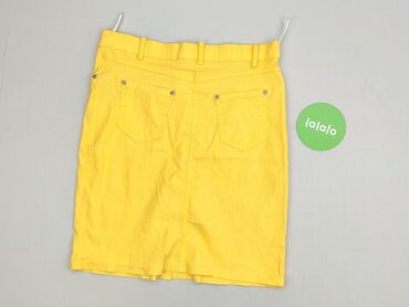 Żółta spódnica jeansowa M’bestiny - Fason: ołówkowy, do kolan - Rozmiar z metki: 34 - Materiał: bawełniany denim z domieszką elastycznych włókien (miękki, lekko rozciągliwy) - Kolor: pastelowy żół...