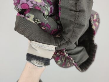 - Wzór: drobne kwiaty w odcieniach fioletu, różu, bieli i zieleni na szarym tle