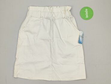 Jasnoniebieska spódnica damska z paskiem - Krój: lekko rozszerzany, długość do kolan (około) - Talia: elastyczna gumka + dołączony szeroki pasek w kolorze beżowym (pleciony, z prostą klamrą) -...