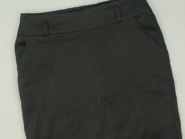 Czarna spódnica ołówkowa z podszewką. - Krój: klasyczny ołówek, długość do kolan - Talia: średnia, szeroki pas z ozdobnymi patkami i metalowymi guziczkami z przodu - Tył: kryty zamek, rozcięcie uł...