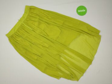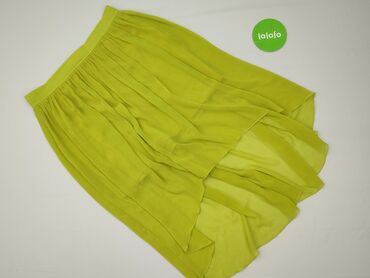 Spódnica ORSAY, rozmiar EUR 38 (SLQ 40). - Krój: rozkloszowany, z licznymi zakładkami, długość do kolan. - Wzór: żółta baza z białym, kwiatowym motywem i pasami przy pasie oraz dole. - Zapięcie: za...