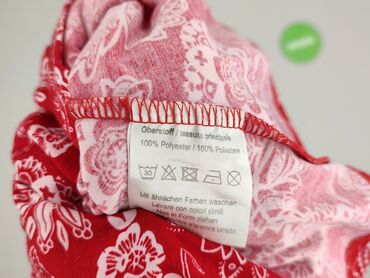 - Wzór: gęsty, biały nadruk kwiatów i ornamentów na czerwonym tle
