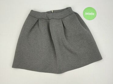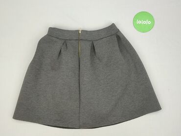 Szara spódnica z zakładkami - Krój: rozkloszowana, z szerokim pasem i głębokimi zakładkami z przodu i z tyłu - Długość: mini/tuż nad kolano (w zależności od wzrostu) - Zapięcie: metalowy suwak z t...