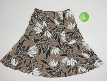 Spódnica damska w kwiaty - Krój: lekko rozszerzany (A-line), z klinami, ładnie układa się na sylwetce - Wzór: drobne, pastelowe kwiaty na ciemnobrązowym tle – romantyczny, vintage’owy charakter - ...