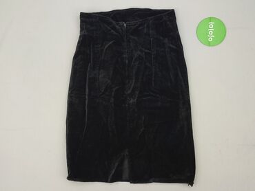 Damska spódnica welurowa, czarna - Materiał: miękki, lekko połyskujący welur (z podszewką) - Fason: ołówkowy, długość za kolano/midi - Zapięcie: zamek z tyłu - Rozcięcie z tyłu dla wygody chodzeni...Stan: