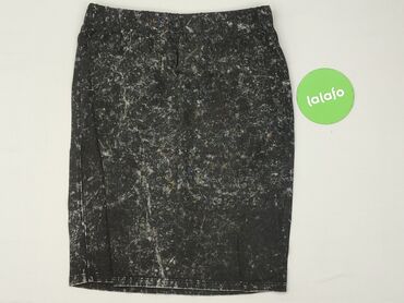 Spódnica damska ołówkowa z elastycznym pasem - Kolor: czarny z subtelnym, połyskującym wzorem roślinnym/ornamentalnym - Krój: ołówkowy, długość za kolano - Talia: gumka – wygodne dopasowanie - Mate...