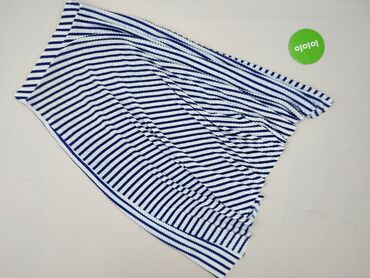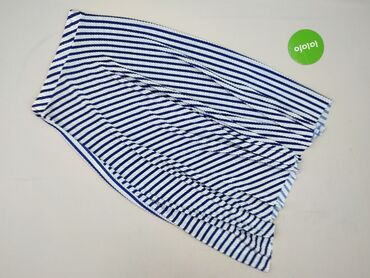 Spódnica Sinsay, rozmiar XS - Krój: prosta, ołówkowa, długość midi - Talia: elastyczna, wszyta guma - Materiał: prążkowana dzianina - Wzór: cienkie, poziome paski w odcieniach jasnego błękitu i bi...