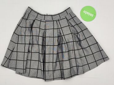 Spódnica Sinsay, rozmiar M - Krój: rozkloszowana, z głębokimi zakładkami z przodu i z tyłu, podkreślająca talię. - Wzór: szara tkanina w czarną kratkę (regularna siatka kwadratów). - Zapięcie: suw...