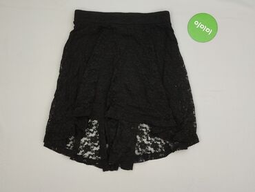 Czarna spódnica z koronki - Fason: asymetryczny z falbaną przy dolnej krawędzi - Długość: midi (wydłużona z jednej strony) - Materiał: koronkowa tkanina o kwiatowym wzorze, na miękkiej, nieprześwi...Stan: