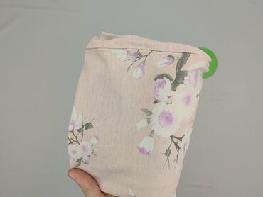 - Wzór: kwiatowy, gałązki z jasnoróżowymi i liliowymi kwiatami na pastelowo‑różowym tle.