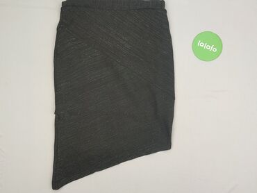 Spódnica damska House – rozmiar L - Fason: lekko rozkloszowana, z zaszewkami, długość mini/przed kolano - Wzór: bogaty, roślinny żakard w odcieniach czerni i srebra (metaliczny połysk) - Pas: szer...