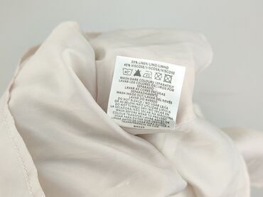 Jasna, lniana spódnica H&M midi. - Kolor: naturalny beż/ecru - Fason: prosta z ciekawym marszczeniem biegnącym wzdłuż przodu i delikatnym rozcięciem u dołu - Długość: midi/za kolano - Tkanina: prz...