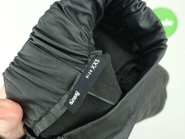 Spódnica damska mini z eco skóry, czarna - Krój: prosty, długość mini - Talia: wysoka z szeroką, marszczoną gumą; szlufki na pasek - Kieszenie: dwie duże, naszywane z przodu - Materiał: miękka skó...