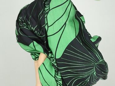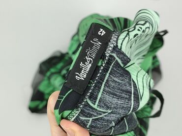 Spódnica damska „Classic” z lekkiego, zwiewnego materiału. - Fason: kopertowy/zakładany z delikatną falbaną przy dole (asymetryczna linia). - Wzór: tropikalne liście, geometryczne pasma i kropki; k...