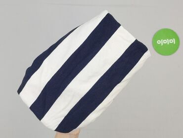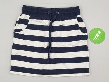 Granatowa spódnica dresowa w białe, poziome paseczki. - Krój: prosta, ołówkowa mini. - Talia: elastyczna guma ze sznurkiem do regulacji (biały, pleciony). - Kieszenie: dwie boczne, wpuszczane z pr...