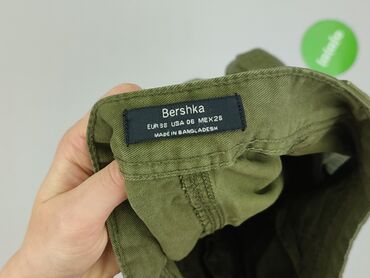 Spódnica mini Bershka - Kolor: khaki/oliwkowy - Rozmiar z metki: EU L / USA L / MEX 30 - Fason: mini, lekko dopasowana - Materiał: gładka tkanina bawełniana z domieszką elastanu (miękka, nieprześw...