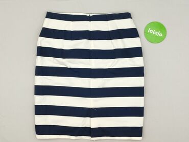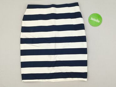 Spódnica damska Esmara - Krój: ołówkowy, z przodem lekko zakładanym (asymetryczne przeszycie). - Wzór: granatowo-białe, poziome paski – klasyczny, marynarski styl. - Talia: elastyczny, szeroki pas...
