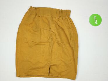 Spódnica ołówkowa w kolorze musztardowym. - Fason: ołówkowy, do kolan - Talia: wysoka, z dwoma szlufkami z przodu (na ozdobny pasek) - Tył: zakładka/rozcięcie ułatwiające swobodne chodzenie - Mate...