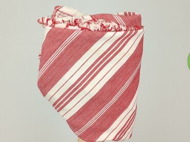 - Wzór: skośne pasy w odcieniach czerwieni i ecru, splot jodełkowy