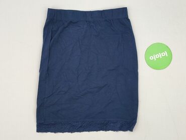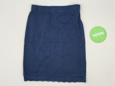 Granatowa spódnica ołówkowa z dzianiny - Krój: ołówkowy, lekko zwężany ku dołowi - Długość: mini/tuż przed kolano (zależnie od wzrostu) - Kolor: granatowy - Materiał: elastyczna, miękka dzianina (...