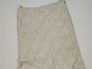 Beżowa spódnica damska, rozmiar 38 - Krój: ołówkowy / midi (za kolano) - Wzór: delikatna jodełka z subtelnymi, pionowymi przeszyciami dekoracyjnymi - Talia: klasyczna, gładki pas - Zapięcie: kryty...