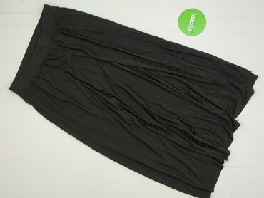 Spódnica damska, czarna, długa/za kolano, z miękkiej, lejącej tkaniny o delikatnie pomarszczonej fakturze. - Krój: rozszerzany, zwiewny, z wieloma miękkimi zakładkami/poziomymi marszczeniami, któr...
