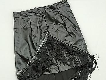 Spódnica damska Sinsay, rozmiar M - Kolor: czarny - Krój: mini, lekko rozkloszowana, z falowanym wykończeniem dołu - Stan: używana - Materiał: 100% poliester z powłoką imitującą skórę (efekt „eko‑...