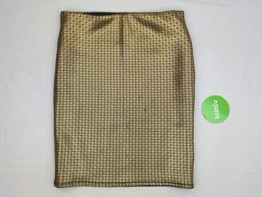 Dodatki: brak kieszeni, czyste wykończenia przy dolnej krawędzi. Klasyczna, szykowna spódnica o wyrazistym, złotym princie.