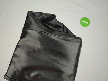 Spódnica damska mini z eco skóry, czarna - Krój: prosty, długość mini - Talia: wysoka z szeroką, marszczoną gumą; szlufki na pasek - Kieszenie: dwie duże, naszywane z przodu - Materiał: miękka skó...Stan: