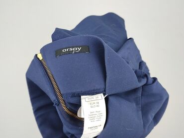 Spódnica damska Orsay, rozmiar EU 38 - Krój: ołówkowy, przed kolano - Kolor: granatowy - Detale: wstawki w pasie i przy kieszeniach z granatowej tkaniny w białe kropki, ozdobne patki z guzikiem, r...Stan: