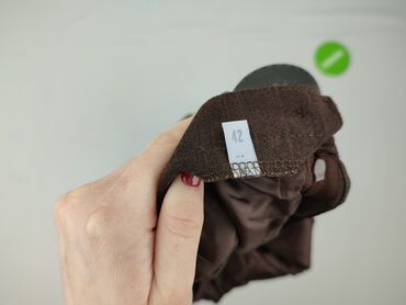 Brązowa spódnica damska Benita - Krój: rozkloszowana, z zaszewkami/plisami z przodu i z tyłu - Długość: przed kolano (mini/midi zależnie od wzrostu) - Rozmiar z metki: S - Zapięcie: suwak z tyłu w...