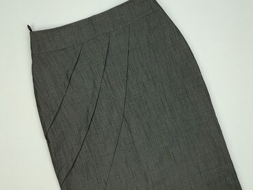 Spódnica ołówkowa damska - Fason: ołówkowy, długość do kolan - Kolorystyka: grafit z popielatymi, falującymi pasami z przodu - Tkanina: gładka, lekko elastyczna; podszewka wewnętrzna - Zapięcie: z...Stan: