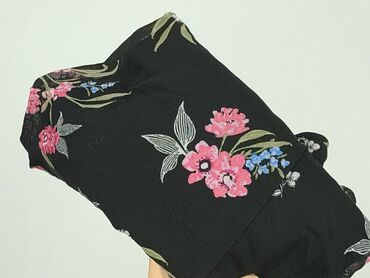 - Wzór: czarny materiał w kwiaty (róże, biele, odcienie niebieskiego i zieleni)