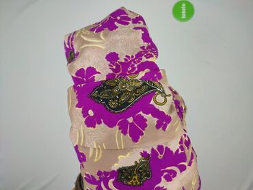 - Wzór/kolor: beżowe tło z intensywnie fioletowym, kwiatowo-orientalnym printem oraz czarno-złotymi motywami paisley