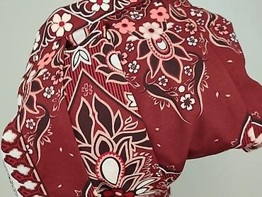 - Kolor: bordowy/burgund z wielobarwnym, orientalnym nadrukiem i kontrastowym pasem zdobień wzdłuż środka