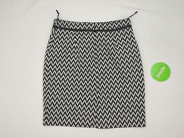 Damska spódnica ołówkowa, czarno‑biała, z gęstym geometrycznym wzorem (jodełka/zigzag). - Krój: dopasowany, midi/przed kolano, bez zapięcia (materiał elastyczny). - Tkanina: dzianina średniej gru...Stan: