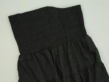 Czarna sukienka damska na ramiączkach, elastyczna - Fason: dopasowany, marszczony (smock) na całej długości, z delikatną falbanką przy dekolcie i u dołu - Ramiączka cienkie - Długość: przed kolano...