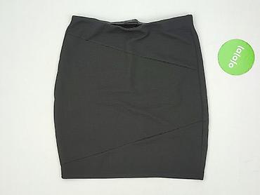 Czarna spódnica damska, rozmiar S. - Krój: ołówkowy, z delikatnie wydłużonym tyłem (rounded hem). - Talia: elastyczna, szeroka guma – wygodne dopasowanie. - Materiał: dzianina bawełniana z domieszk...